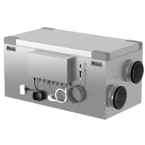 - två tystgående radialfläktar med EC-motor, fläkthjul med bakåtböjda skovlar.som är anslutna med snabbkontakter och är lätta att ta ut för rengöring.