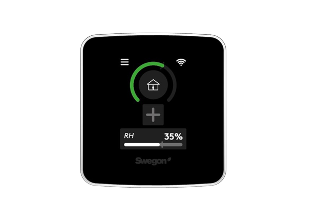 Med hjälp av styrsystemet Swegon CASA Genius kan de boende övervaka inomhusluftens kvalitet (RH, CO2, VOC, °C), styra ventilationen efter behov eller låta den intelligenta styrningen