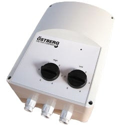 För hög och låg hastighetsstyrning av 1-fasmotorer. En timer och/eller en termostat kan kopplas in. Fem användarvalda spänningar kan sättas för hög- och låg-hastighet. Styrningen är innesluten i en hållbar PVC-låda. OBS ej EC-fläktar.