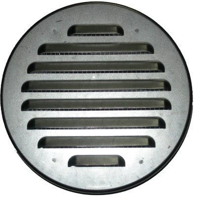 Galler av galvaniserad stålplåt med insektsnät. Innerstosen passar till både plaströr och spiralrör av dimension 100. Yttermåttet är 130mm.