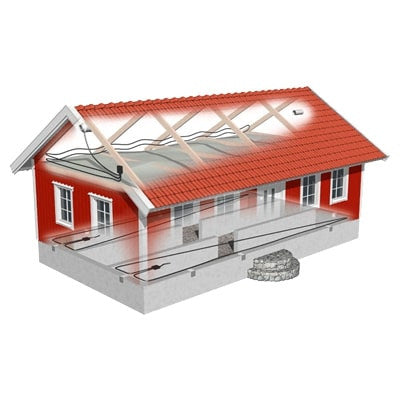 Köld- och fuktlasten i en krypgrund eller torpargrund med marknadsäckning kommer nästan enbart från grundmurar och med luften som ventileras in. Därför monteras TrygghetsVaktens värmeslinga längs med grunden och framför allt på norden och västsidan av huset där solen inte skiner eller kommer skickas på dagen . Har du valt TrygghetsVakten Krypgrund 5.0 skall alla ytterväggar täckas av värmekabeln. I och med att varm luft stiger och har lätt för att flytta sig kommer det även en del luft vidare in mot mitten i krypgrunden. Dessutom är klimatet i mitten av krypgrunden generellt bättre än ut mot kanterna.