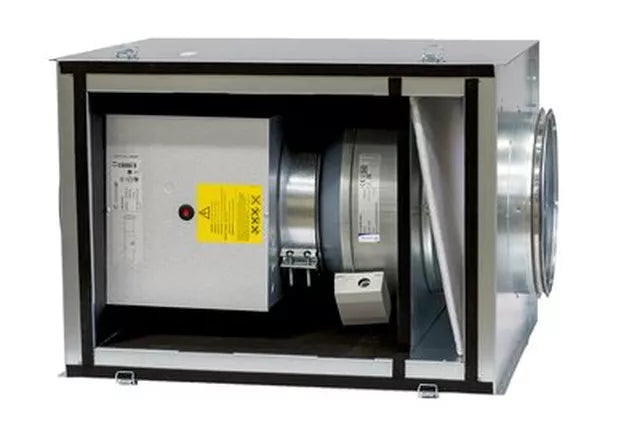 Systemair TLP är en kompakt kanalläkt där fläkt, värmare och filter är i ett enda hölje. Fläkten kan regleras med en transformator eller tyristor.