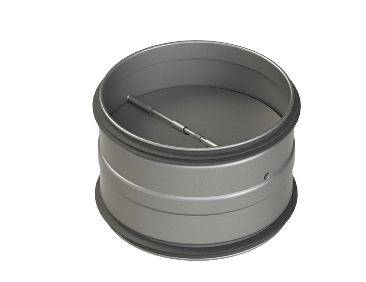 Backspjäll 100 med tätningslist(kallrasskydd) med nippelmått avsedda för montage direkt i runda spiralrör eller flexibla slangar, av förzinkad stålplåt enligt SS-EN 10142, Z275. Färdig med tätningslist och därför slipper du tätning med ventfogmassa eller tejp.