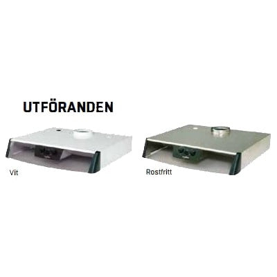 Kåpan levereras i vitt eller rostfritt utförande och har en bygghöjd på 10 cm. Anslutningarna sitter antingen till vänster eller höger.