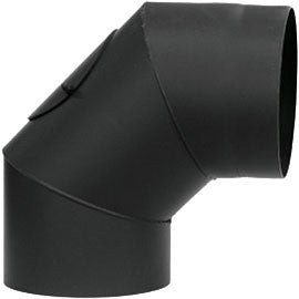 Böj med sotlucka. Används för anslutning av braskamin och spis mot murstock.