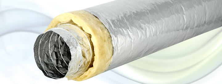 Består av en perforerad aluminium/polyesterlaminat inre kanal termiskt och akustiskt isolerad med glasull och är försedd med en aluminiumlaminerad yttermantel. En plastbarri mellan kanalen och glasullen förhindrar diffusion av glasullspartiklar.