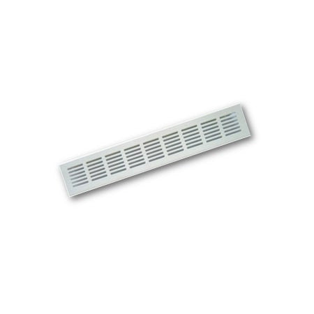 Vitt aluminiumgaller för luftströmmning mellan rum. Kan monteras på väggen eller ovanför dörren.