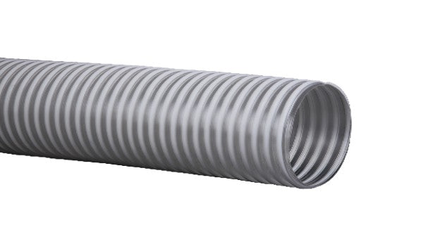 Slangen är tillverkad av hård och mjuk PVC med en slät insida och förstärkning i hård PVC. Den är lätt och flexibel, vilket gör den enkel att hantera och installera.